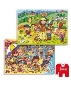 2 puzzles en carton renforcé avec de grandes pièces faciles à prendre en main et des photos douces. Puzzles sur le thème des vacances à la mer et à la montagne.